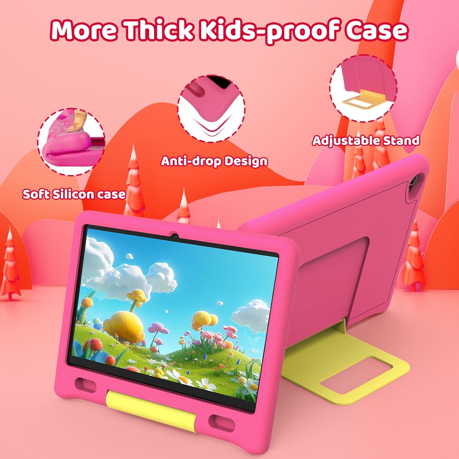 【Tablet Designed Specifically for Kids Daily Use & Learn】This tablet for kids is lightweight and easy to carry, equipped with a specialized shock-absorbing and anti fall shell that can effectively resist daily drops, collisions, and scratches. Built in adjustable bracket, paired with dual stereo speakers, 5MP+8MP dual cameras, and BT 5.3 and Wi Fi 6, providing a fully functional user experience that children can’t resist. If you encounter technical issues while using the tablet, you can contact us at any time. It comes with a one-year warranty service.