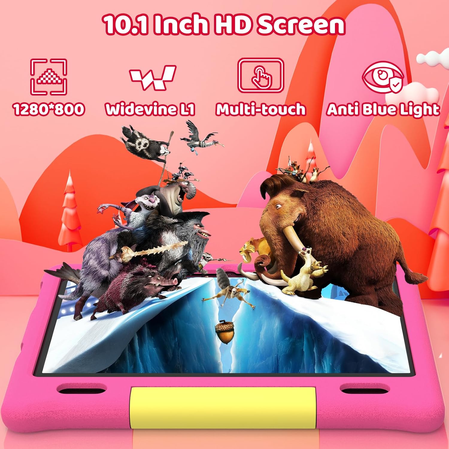【Blue Light Filter Eye-Care IPS Display + Widevine L1】The tablet is designed specifically for kids’ eye safety and seamless content access, reducing harmful blue light by up to 60% and protecting kids’ vision during extended learning or play periods. The tablet is equipped with a high-definition IPS screen with a 178 ° wide viewing angle, providing clear and consistent visual effects from any position. It is also certified by Widevine L1 and seamlessly compatible with top child friendly streaming services (YouTube Kids, Disney+) and educational platforms, providing clear 1080p high-definition content for age appropriate videos, interactive courses, and more.