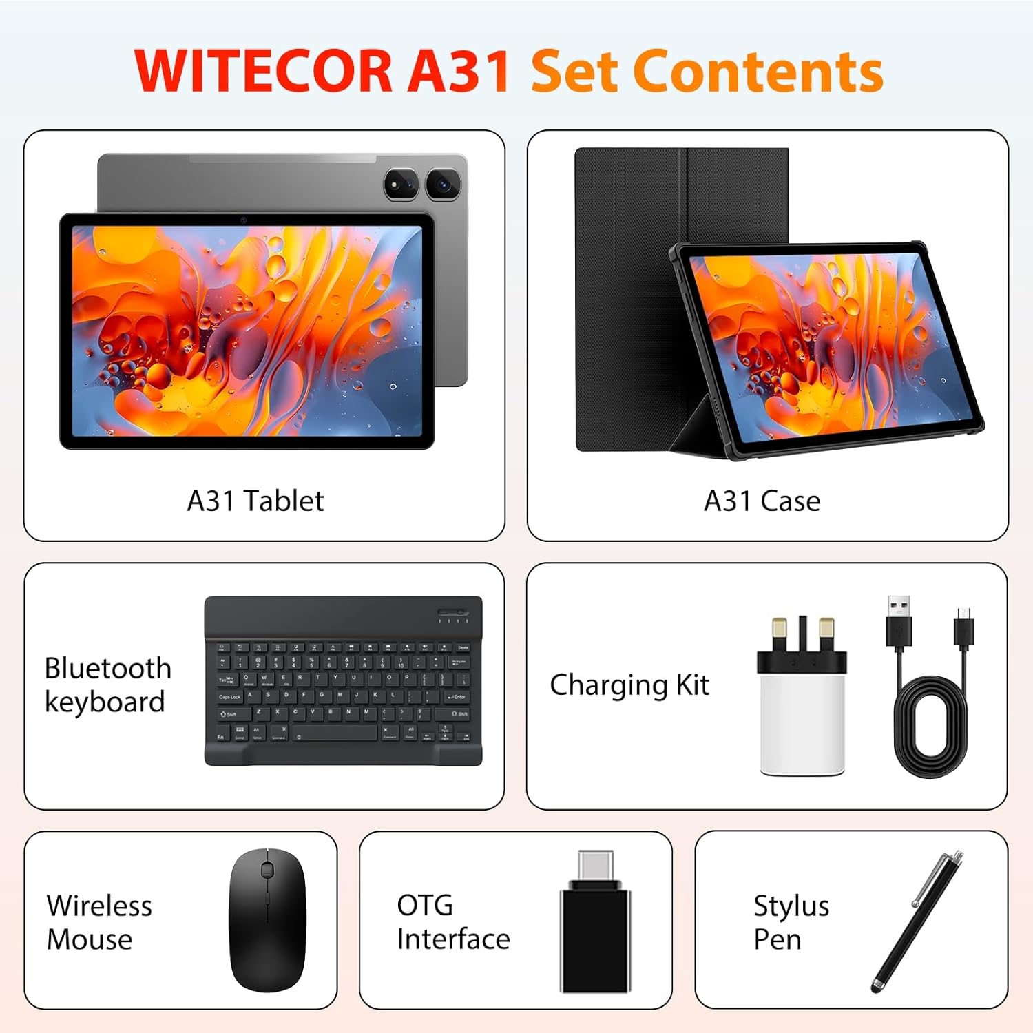 👍【11-Inch 2K FHD InCell Display】The WITECOR A31 Tablet boasts an 11-inch screen with 2000×1200 resolution, delivering 2K FHD visuals. Its sharp details and vibrant colors create an immersive experience, perfect for movies, gaming, or everyday browsing.