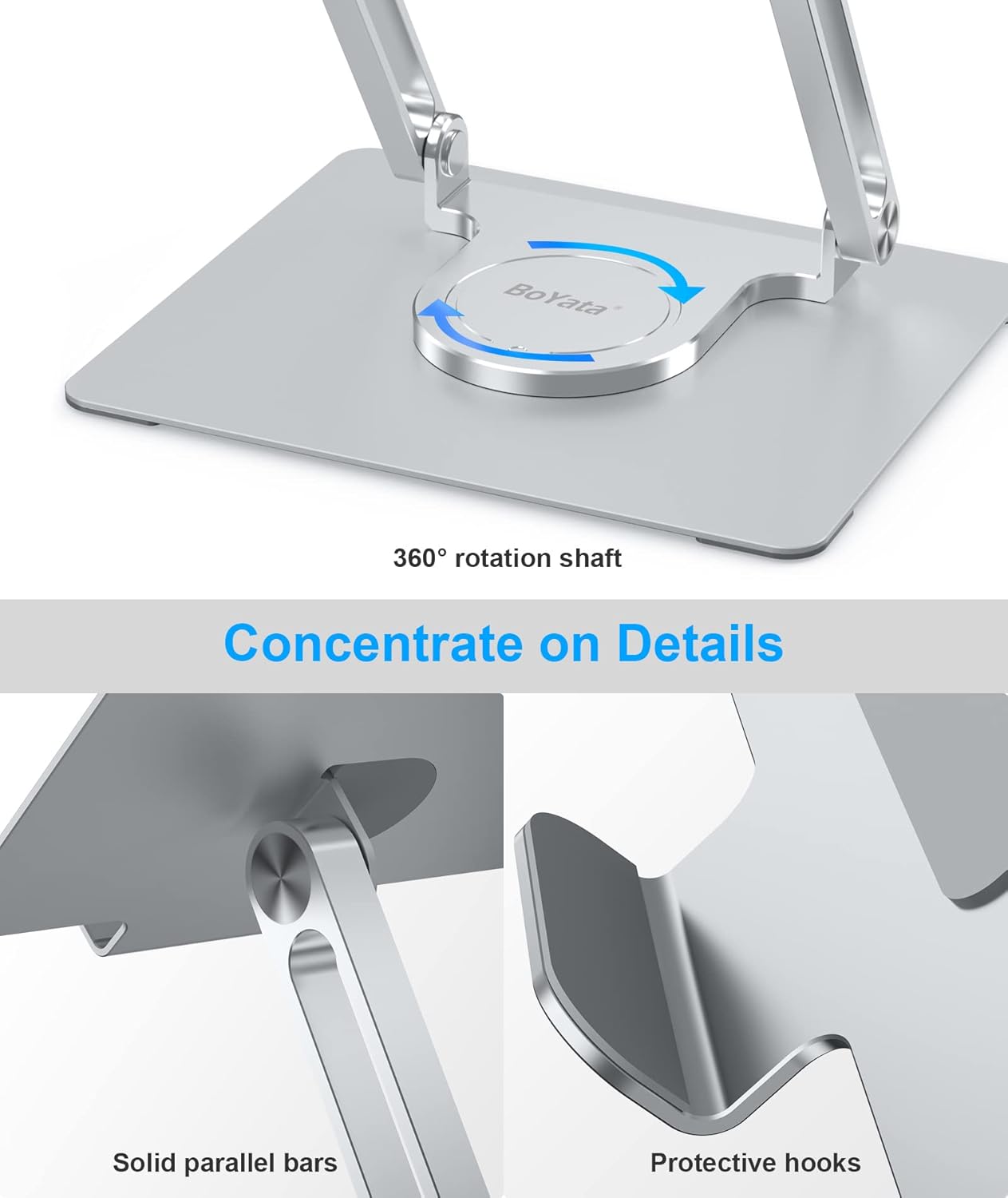BoYata Laptop Stand for Desk, Adjustable Computer Stand with 360° Rotating Base, Ergonomic Foldable Laptop Riser Holder for Collaborative Work, Compatible with All MacBook Pro/Air, Notebook up to 17″