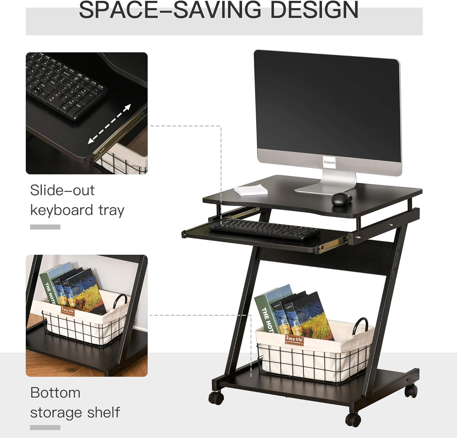 WORK AND STORAGE: This home office desk features an open table top, slide-out keyboard tray and bottom shelf, our workstations gives you room to work and keep all essentials stored together.