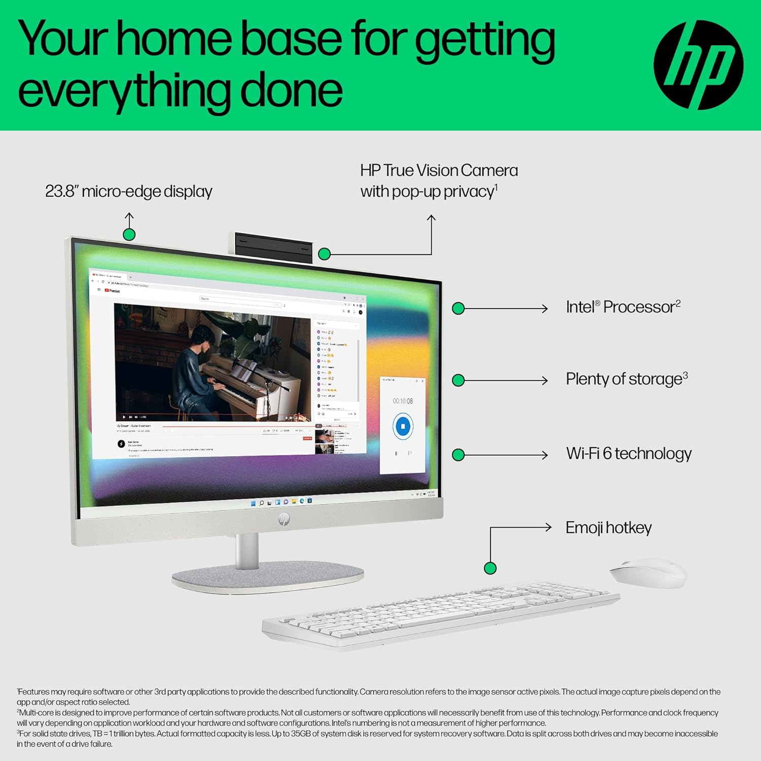 HP 24” All-in-One Desktop PC | Intel® Core™ i3-N300 Processor | 8 GB RAM | 256 GB SSD | Intel UHD Graphics | FHD Display | Windows 11 Home | Dual Speakers | Shell White | 24-cr0063sa