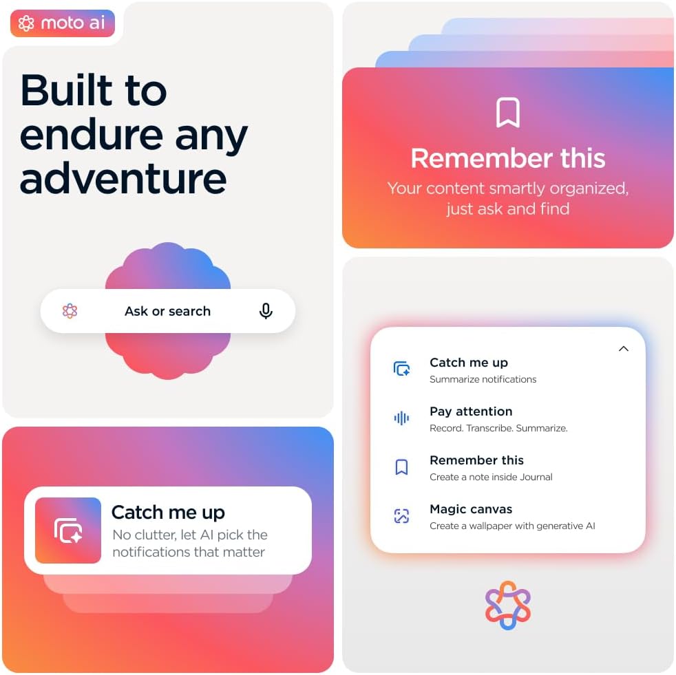 Capture brilliance with a 50MP Sony LYTIA camera powered by moto ai. Shoot vivid photos day or night with ease.