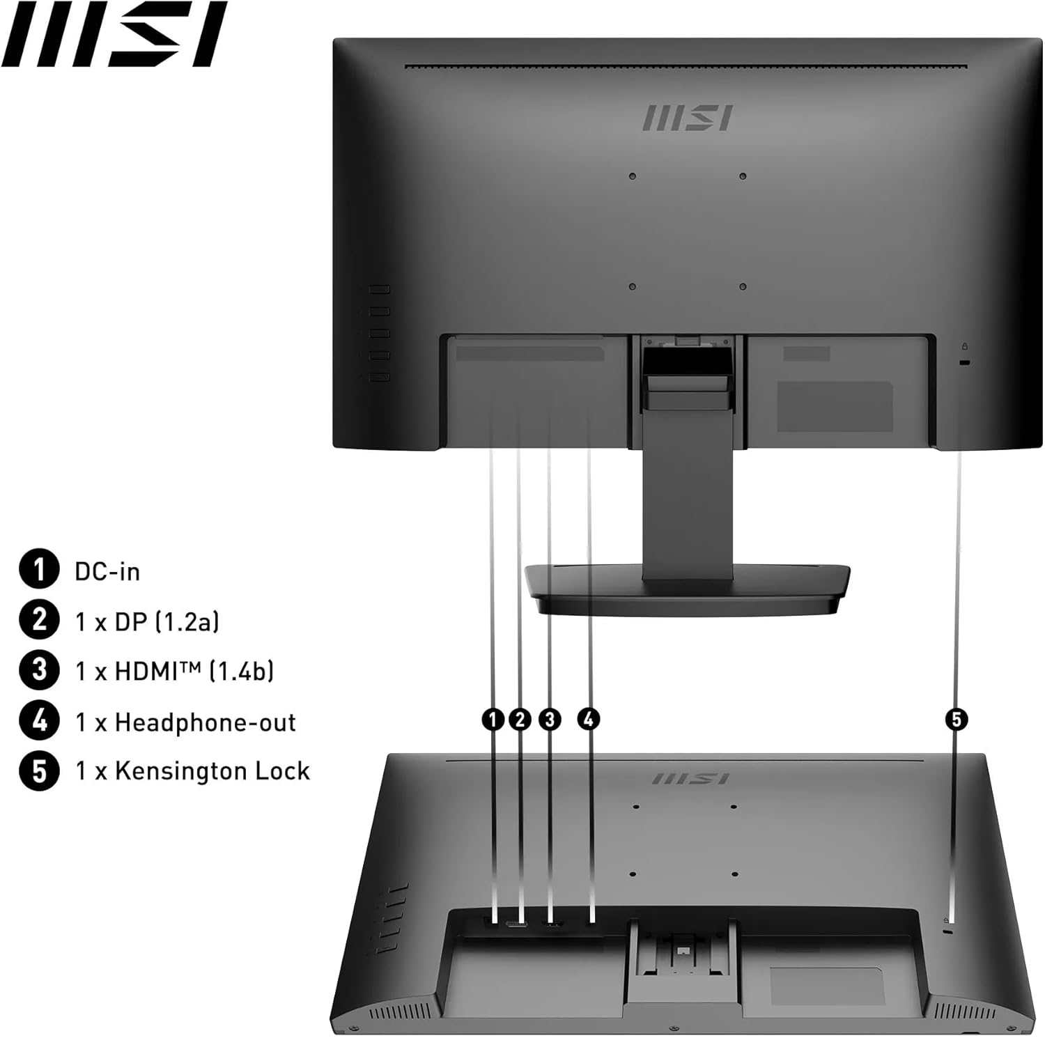 21.45-inch FHD Resolution with 3000:1 Contrast Ratio Optimal Size for Standard Desktops 100Hz High Refresh Rate & Eye-Q Check TÜV Rheinland Eye Comfort Certified Anti-Flicker & Less Blue Light Tool Free, Tilt Adjustable & VESA Mountable Design Adaptive-Sync Supported HDMI 1.4b (FHD@100Hz) & DisplayPort 1.2a Connectivity MSI Display Kit App Support