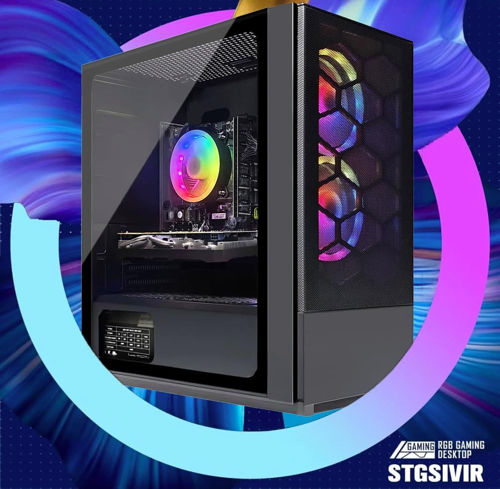 Gaming desktop with stylish design: three RGB fans add a touch of style to your gaming setup while keeping the system cool.