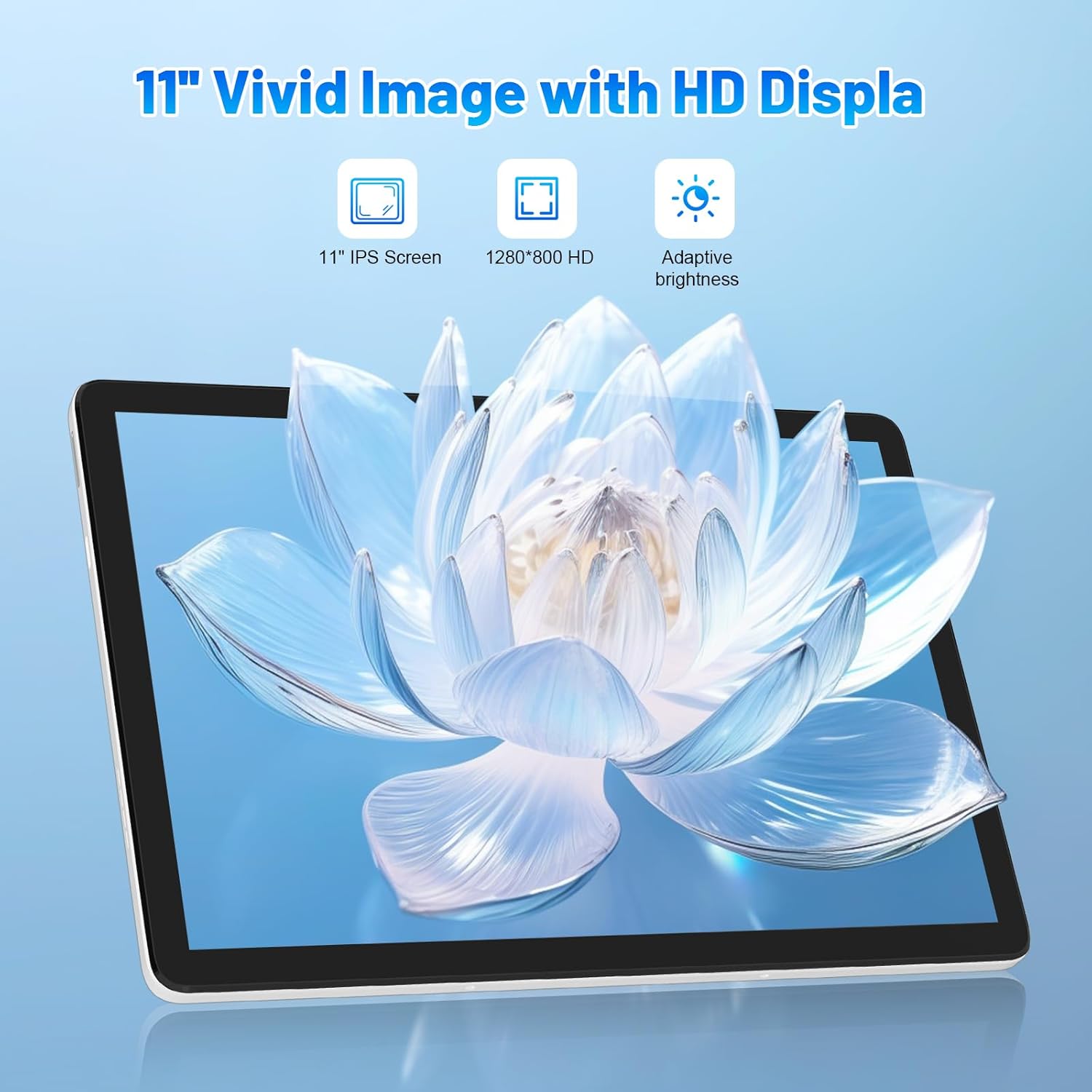 【Face Unlock & Dual Camera】Unlock instantly with Face ID, speed and security for seamless access to this 11 inch tablet. The 8MP rear camera captures crisp, detailed shots perfect for scanning, snapping landscapes, or casual photography. The 5MP front camera enhances selfes-take and video calls with Al-powered optimization. Whether you’re mulitasking or connecting remotely, this 11 inch tablet android 14 balances convenience and clarily.
