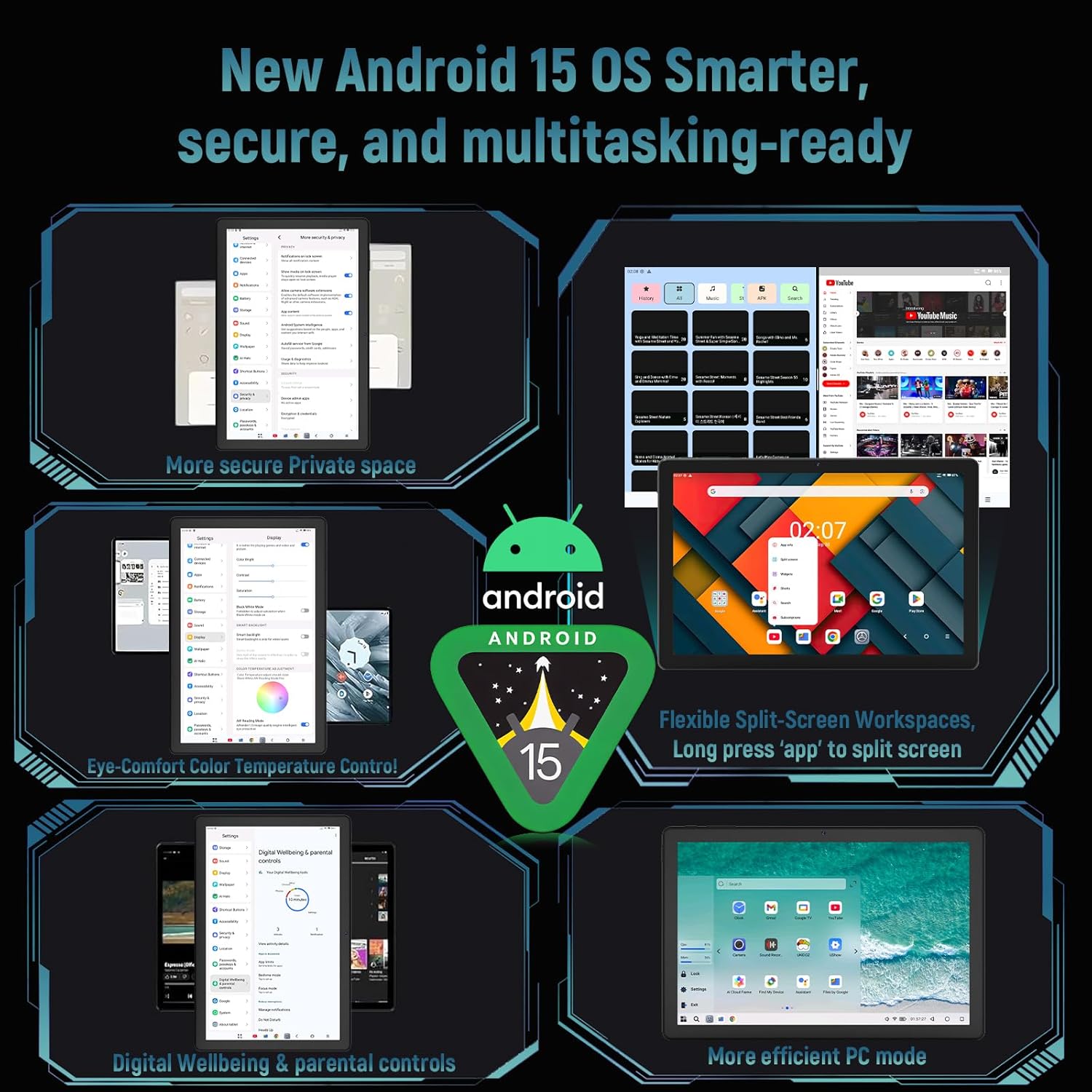 【Latest Android 15 & Octa-Core Performance】The G13 tablet runs on the latest Android 15 operating system, offering enhanced privacy controls, advanced security features, and user-friendly options like split-screen mode, parental controls, and low blue light protection. Powered by an octa-core processor and an IMG BXM-4-64 GPU, it delivers smooth multitasking for entertainment, work, and learning.