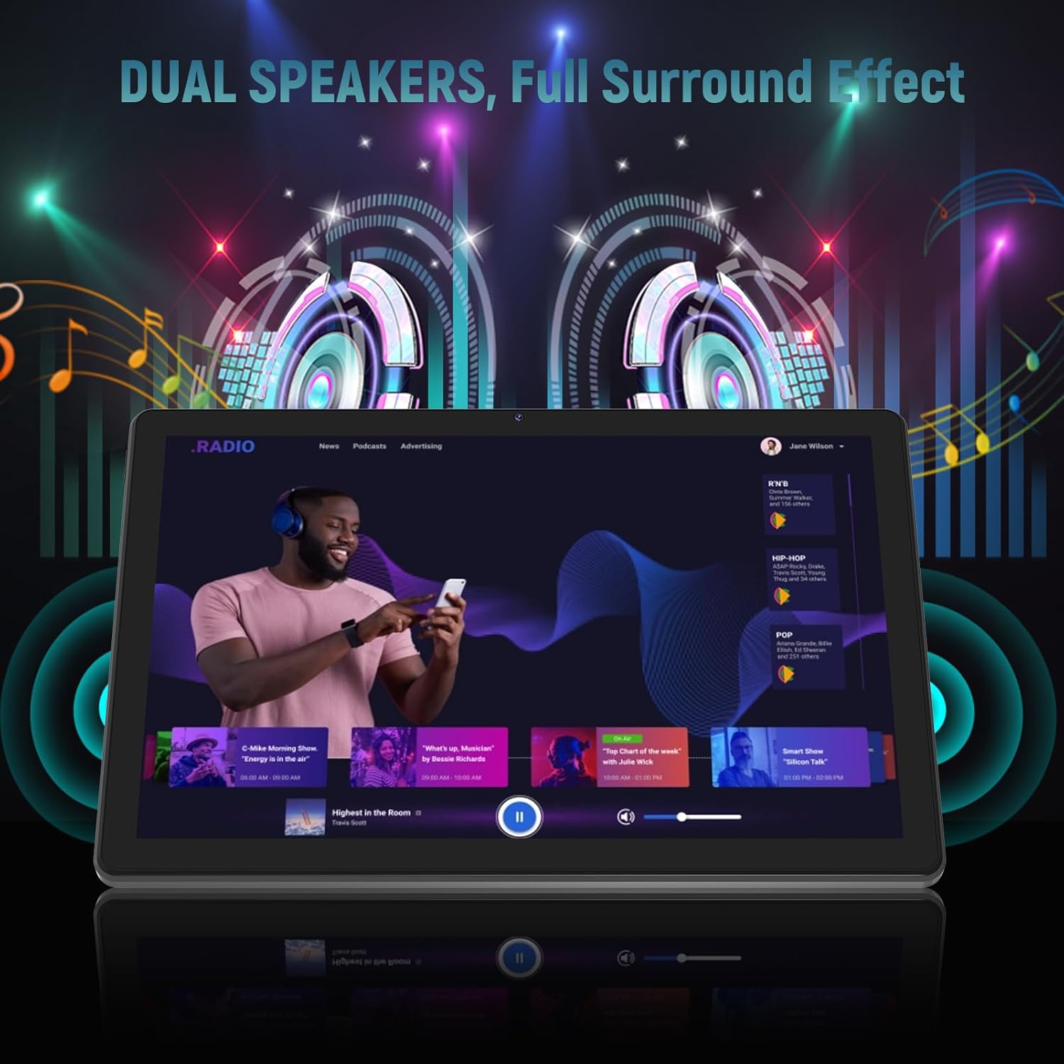 【Immersive Audio, Dual Cameras & Enhanced Connectivity】Our 10 inch tablet with dual 1W speakers provide rich, clear sound for videos, calls, and music. An 8MP rear camera and 5MP front camera support video calls and photography. With dual-band 5G WiFi, Bluetooth 5.4, USB-C OTG, GPS, and Google Mobile Services (GMS) certification, the G13 keeps you connected and productive.(OTG adapter cable not included.)
